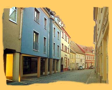 Auch in der Kirchstraße,gelegen in Mitten der Altstadt und unmittelbar zum Marktplatz hinführend,sind die Anstrengungen und Ergebnisse im Zuge der Altstadtsanierung deutlich zu sehen.Viele Häuser wurden aufwendig instantgesetzt und modernisiert,Fassaden liebevoll restoutiert und ansässige Geschäfte und Einrichtungen neugestaltet,