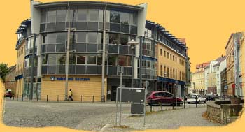 Aber auch Neubauten,wie die Sparkasse in der Schloßstra,ße,das Kino ,das Hotel " Zur Mühle ", und der " Fließhof " am Markt,aber auch der moderne Baustil der Volksbank an der Altstadtkreuzung,sind beredtes Zeugniss für den Wandel und den Neubeginn in der Altstadt nach der Wende,was meine Bilder unterstreichen sollen.