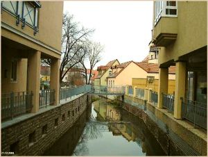 Schwarze Elster mit seinen Fließen und Armen die Stadt,auf denen man